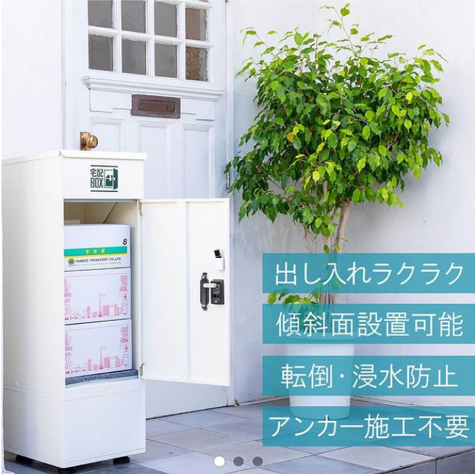 - 工事不要で即設置OK:置くだけのスタンドタイプだから、届いたその日から「再配達ゼロ」の生活が始まります。