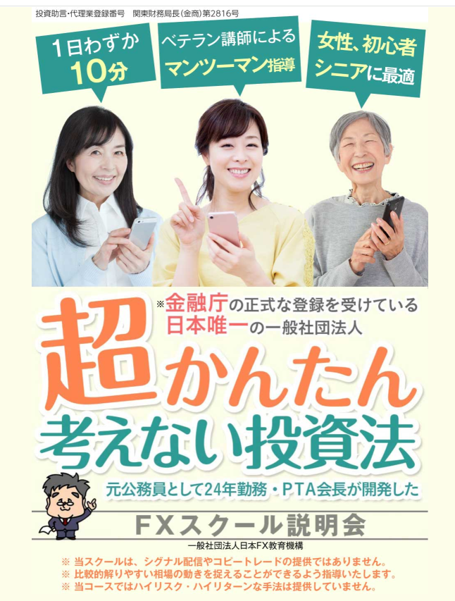 日本FX教育機構 超かんたん考えない投資法【FXスクール説明会】について