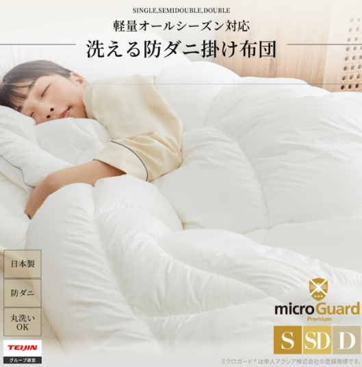 | 商品名 | 安心と信頼のダニ・ハウスダスト対策寝具テイジンの【ミクロガード】 |